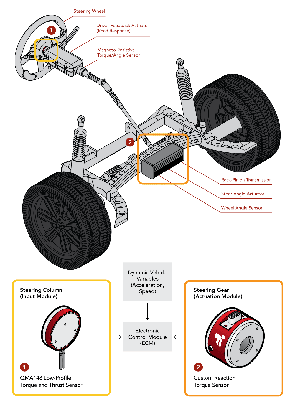 2、转向器/驱动模块:在产品设计验证期间,控制工程师需要测量施加到齿条和小齿轮传动装置(驱动模块)的驱动扭矩。这确保了扭矩控制回路的正确校准。MK网官方站网页版_MK(中国)的TFF系列静态扭矩传感器可以安装在转向角执行器,以测量实际施加的致动扭矩,并通过额外的扭矩反馈正确校准驱动模块。
