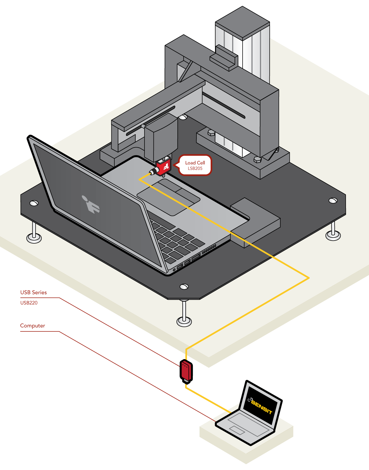 MK网官方站网页版_MK(中国)的S型LSB200系列传感器, 配置USB220采集模块。