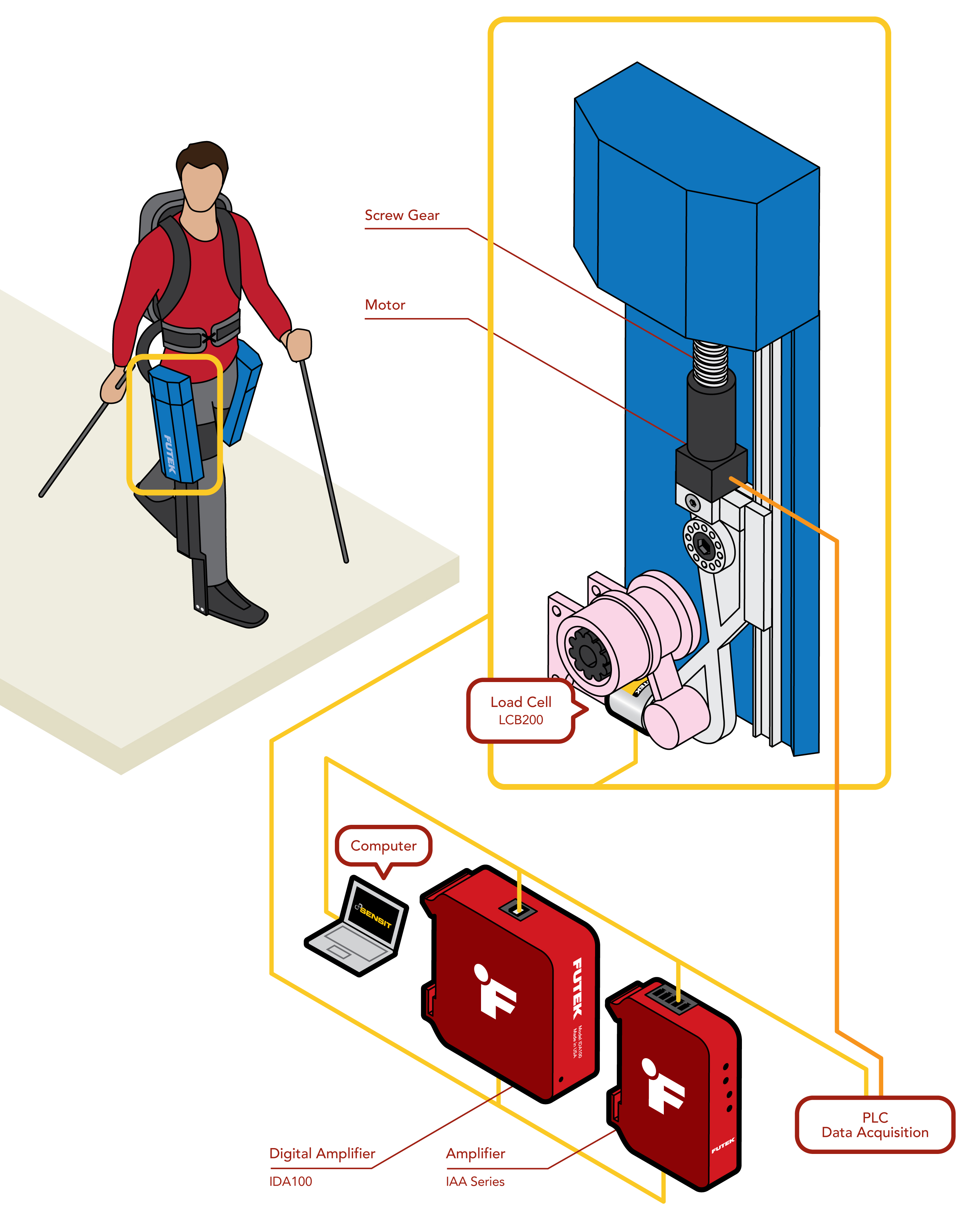 2、LCB200 安装在与电机相连的专用夹具上,使其像人的关节一样运动,使无关负载最小化,并提供准确的负载数据。