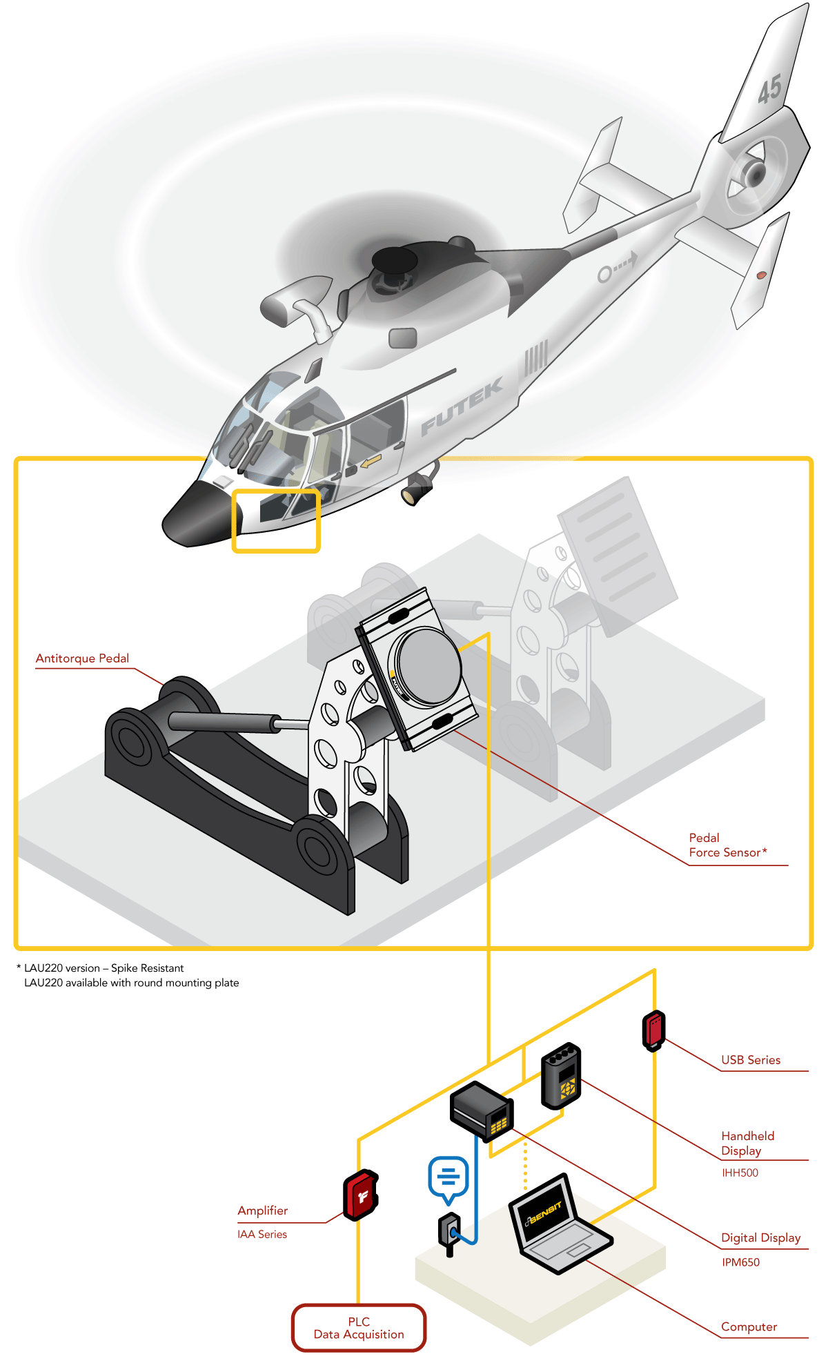 2、我们的质保工程师可以利用MK网官方站网页版_MK(中国)的踏板力传感器,测量驱动直升机飞行时脚蹬的力的大小。